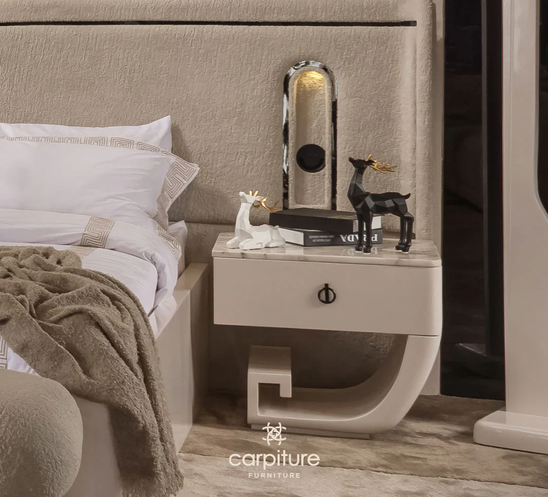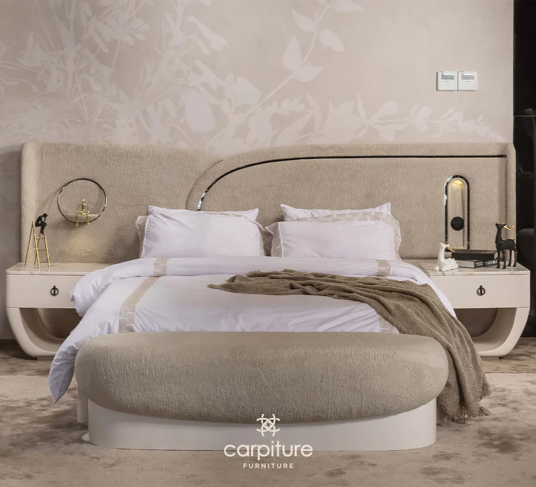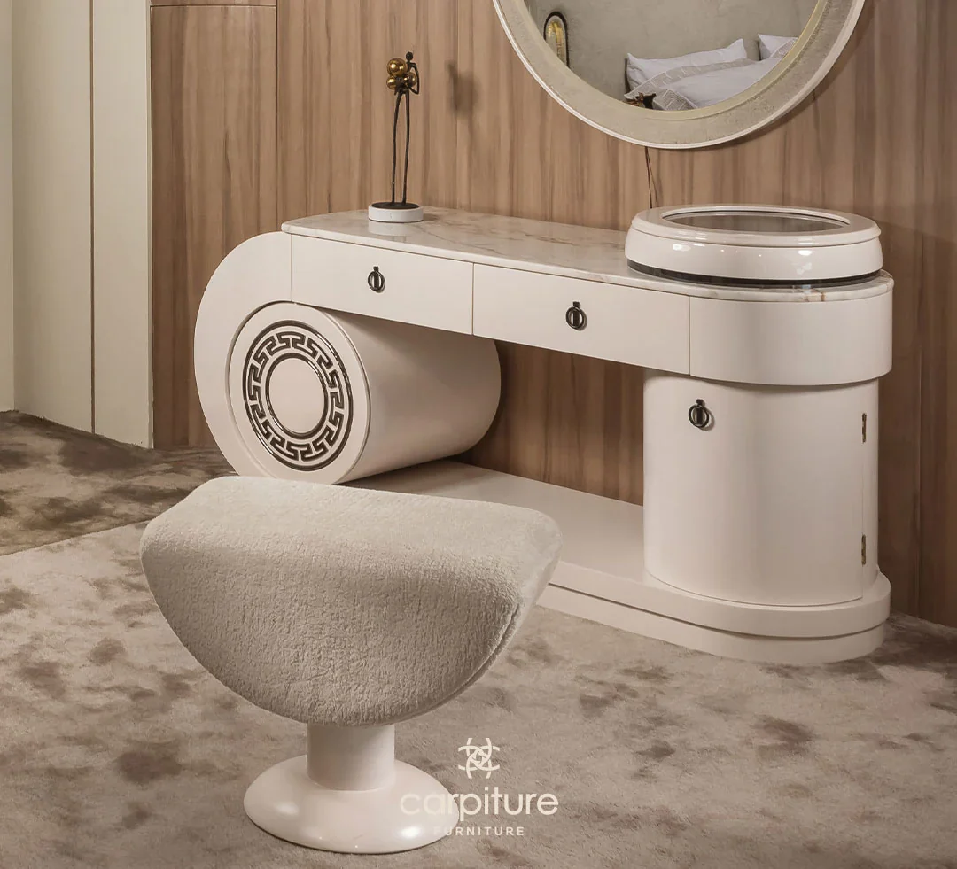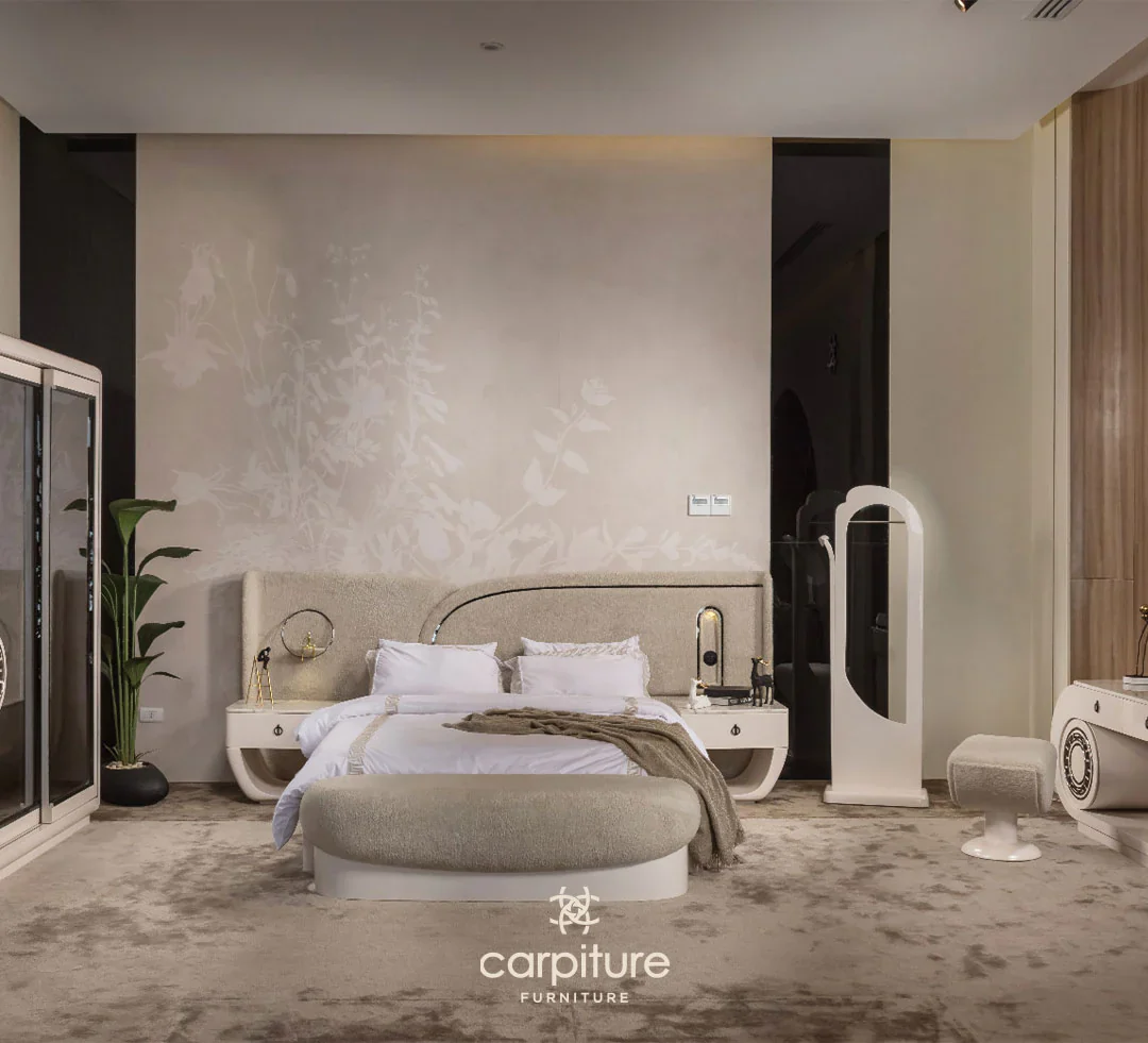 Wardrobe + bed + 2 nightstands + dressing table with mirror + pouf + bench + hanger