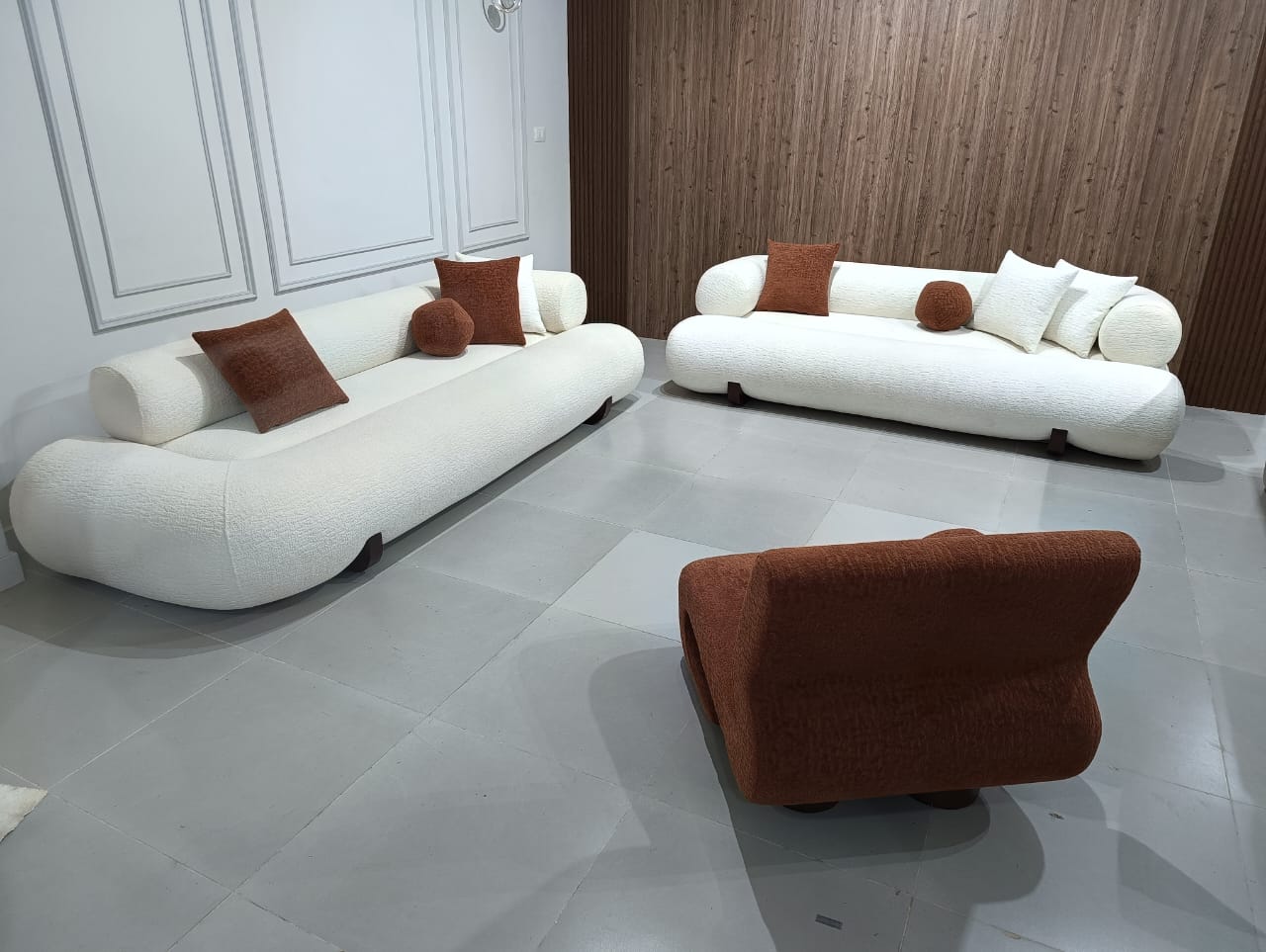 كنبة ٢ مقعد + كنبة ٣ مقعد + 1 فوتيه خشب زان احمر روماني سفينج كثافة ٣٥ سوفت Size : 300 – 220 - 80 Cm.