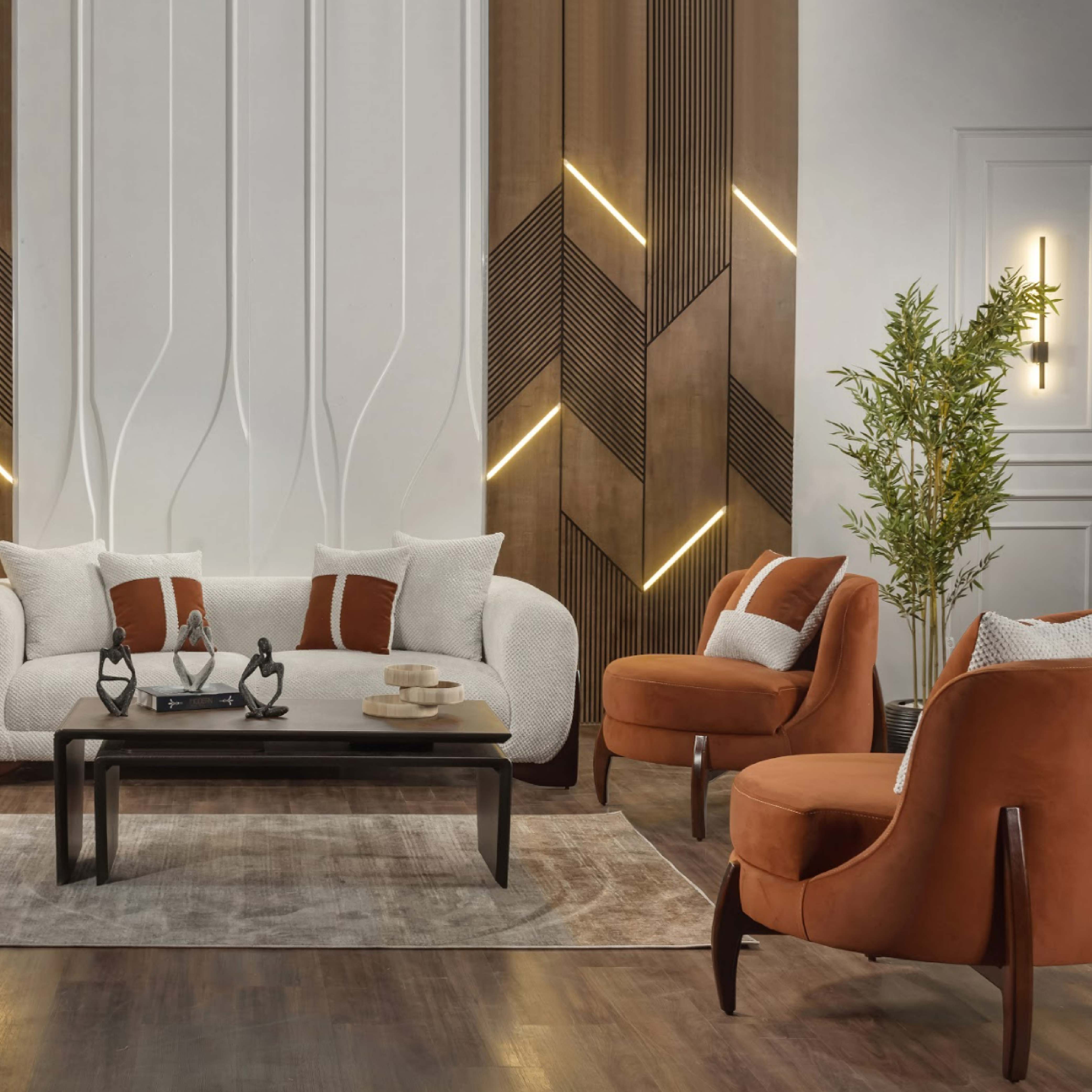 كنبة ٢ مقعد + كنبة ٣ مقعد + ٢ فوتيه خشب زان احمر روماني سفينج كثافة ٣٥ سوفت
