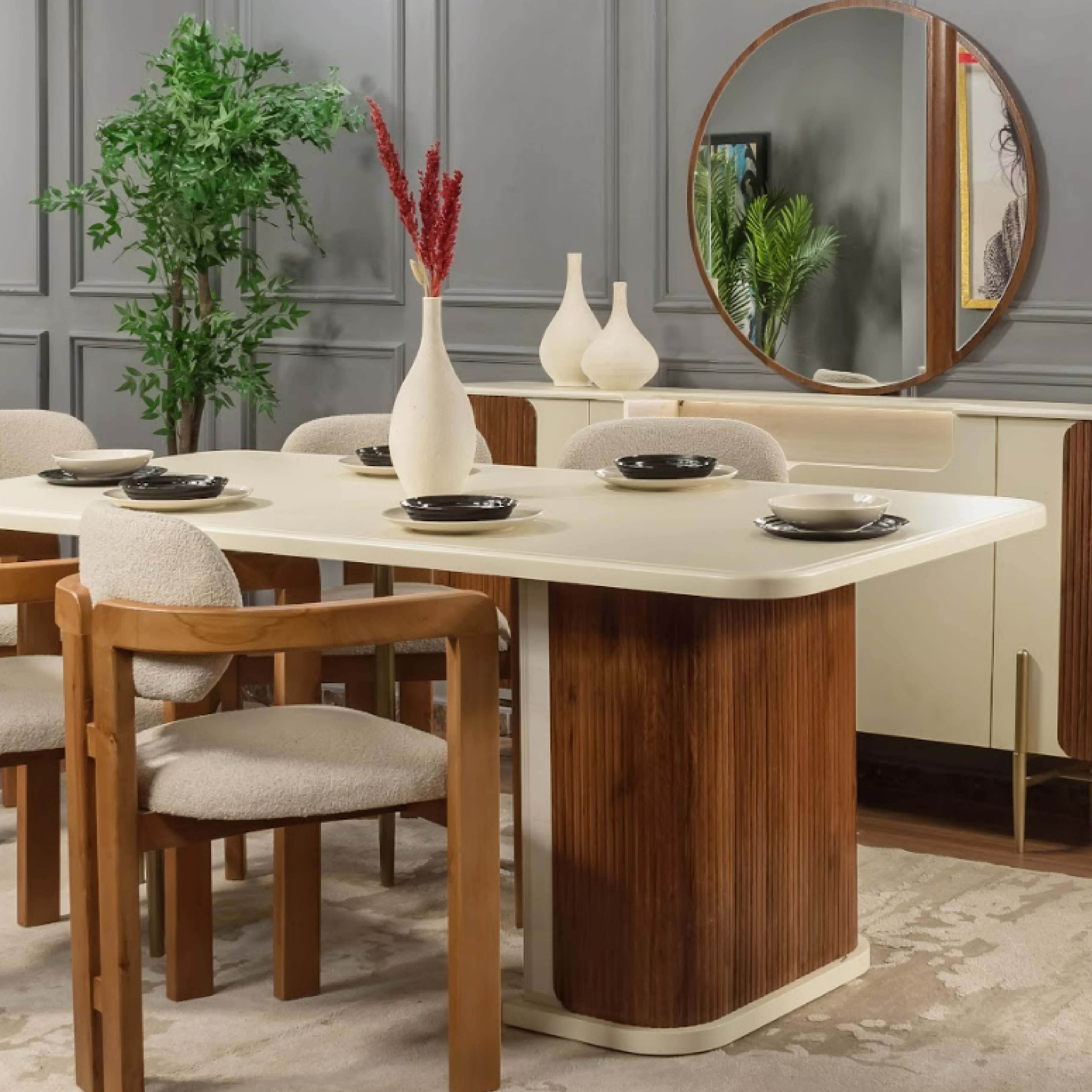 سفرة مكونة من ترابيزة + 6 كراسي + نيش + بوفيه مسطحات الغرفة خشب ام دي اف كراسي السفرة خشب زان احمر