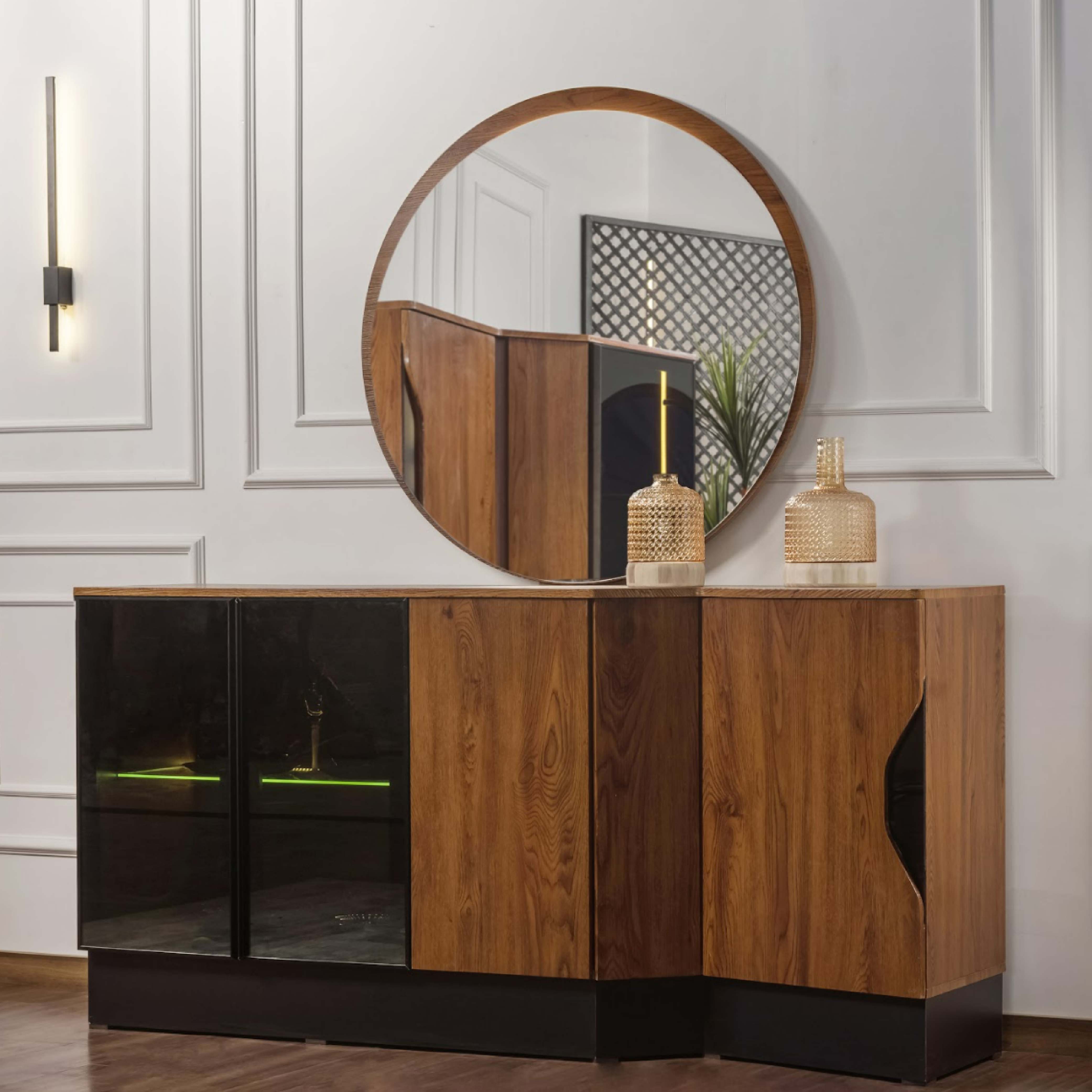 سفرة مكونة من ترابيزة + 6 كراسي + نيش + بوفيه مسطحات الغرفة خشب ام دي اف كراسي السفرة خشب زان احمر
