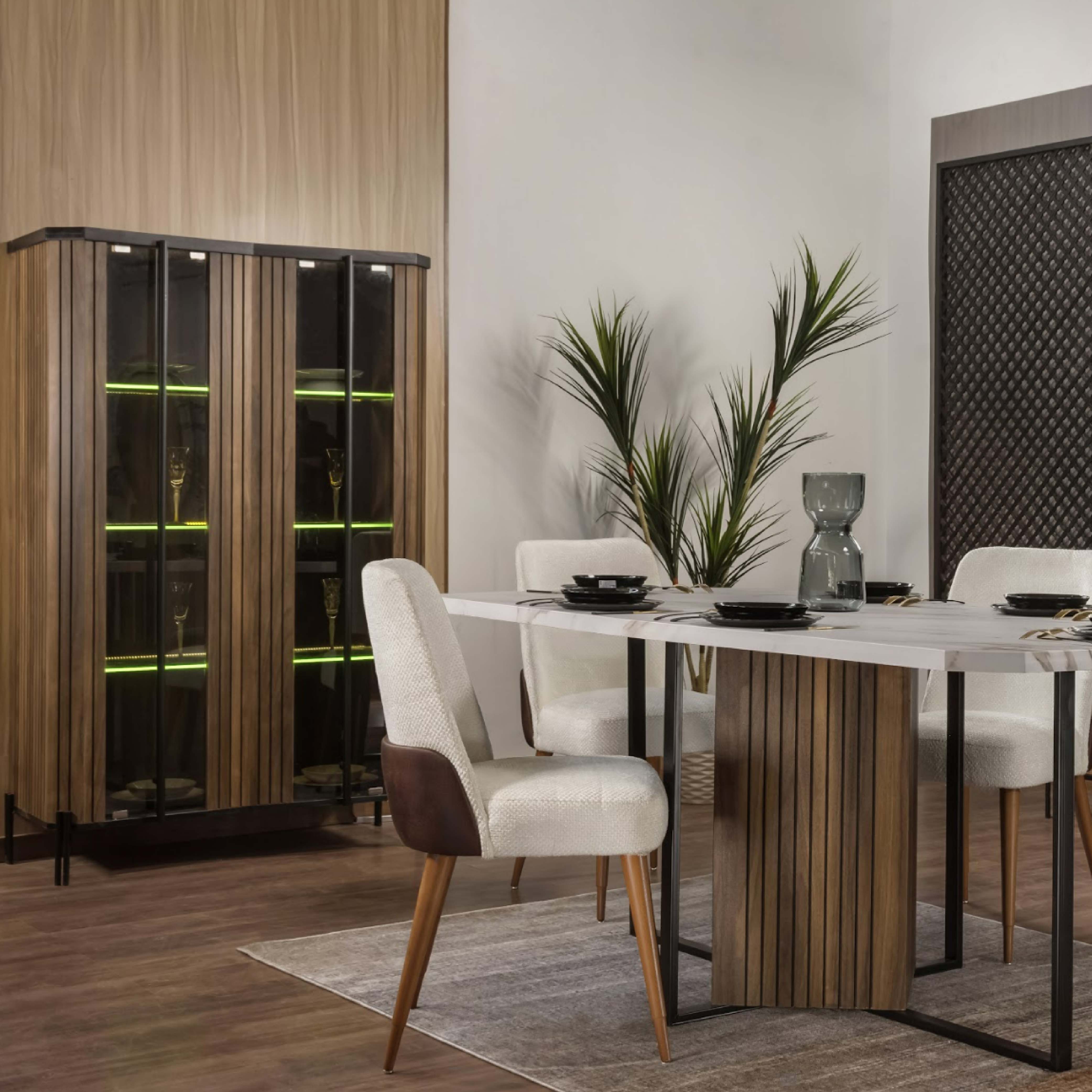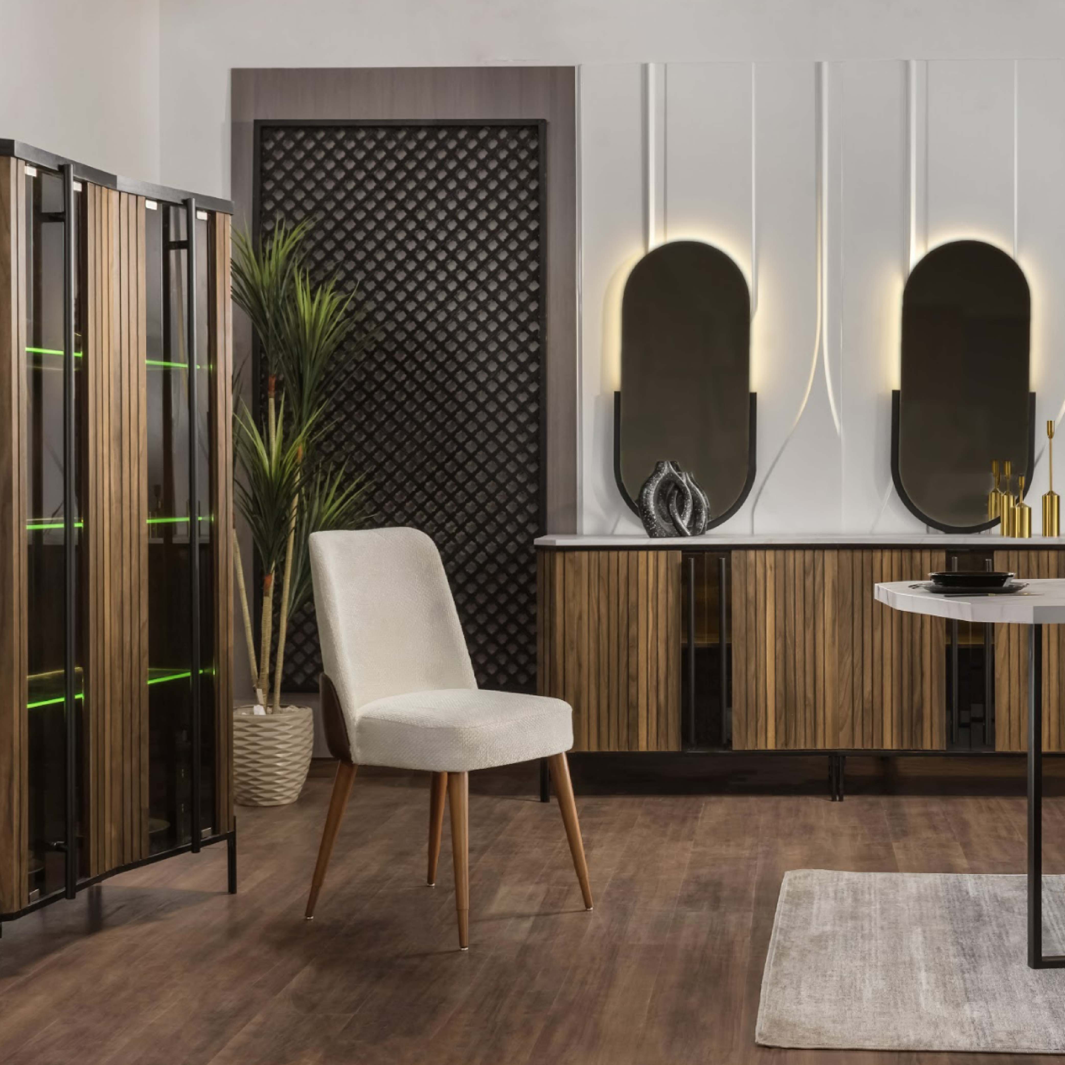 سفرة مكونة من ترابيزة + 6 كراسي + نيش + بوفيه مسطحات الغرفة خشب ام دي اف كراسي السفرة خشب زان احمر