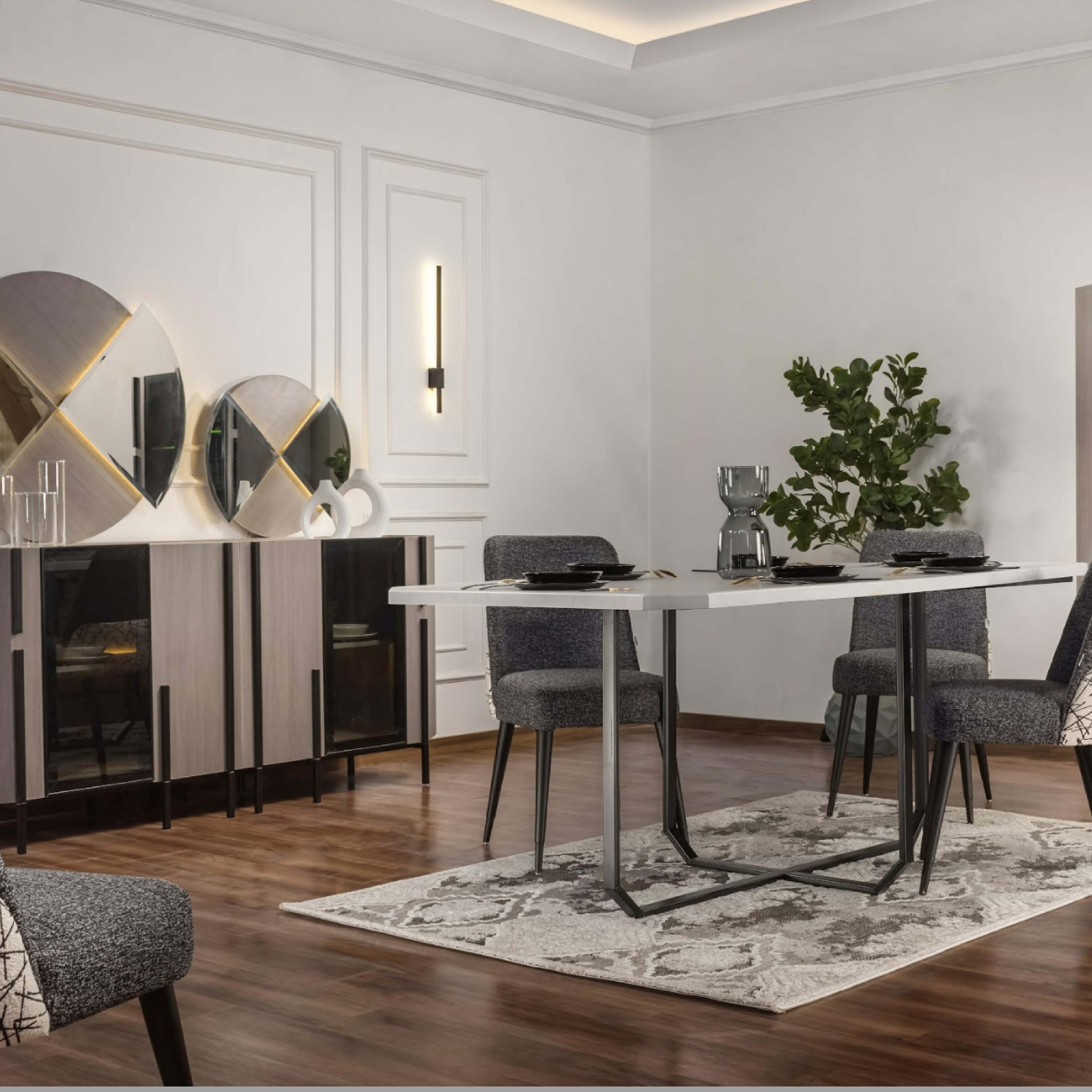 سفرة مكونة من ترابيزة + 6 كراسي + نيش + بوفيه مسطحات الغرفة خشب ام دي اف كراسي السفرة خشب زان احمر