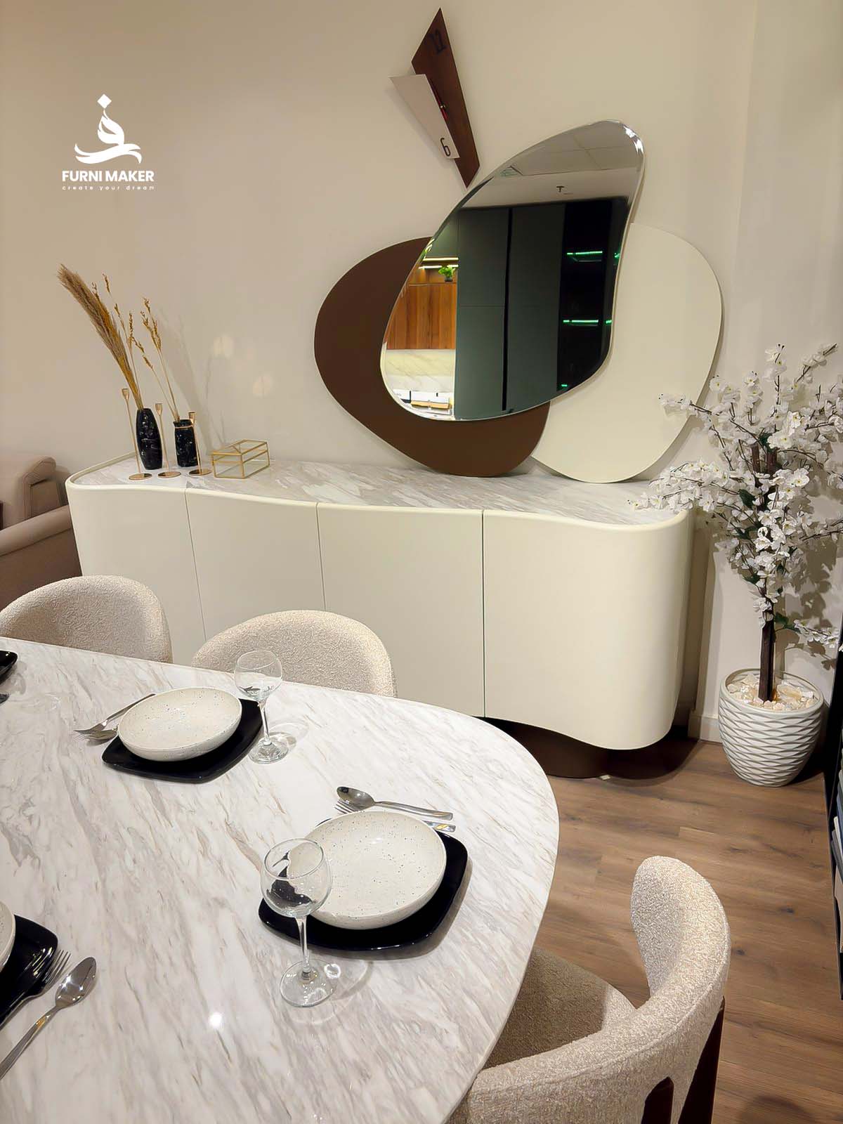 سفرة مكونة من ترابيزة + 6 كراسي + نيش + بوفيه مسطحات الغرفة خشب ام دي اف كراسي السفرة خشب زان احمر