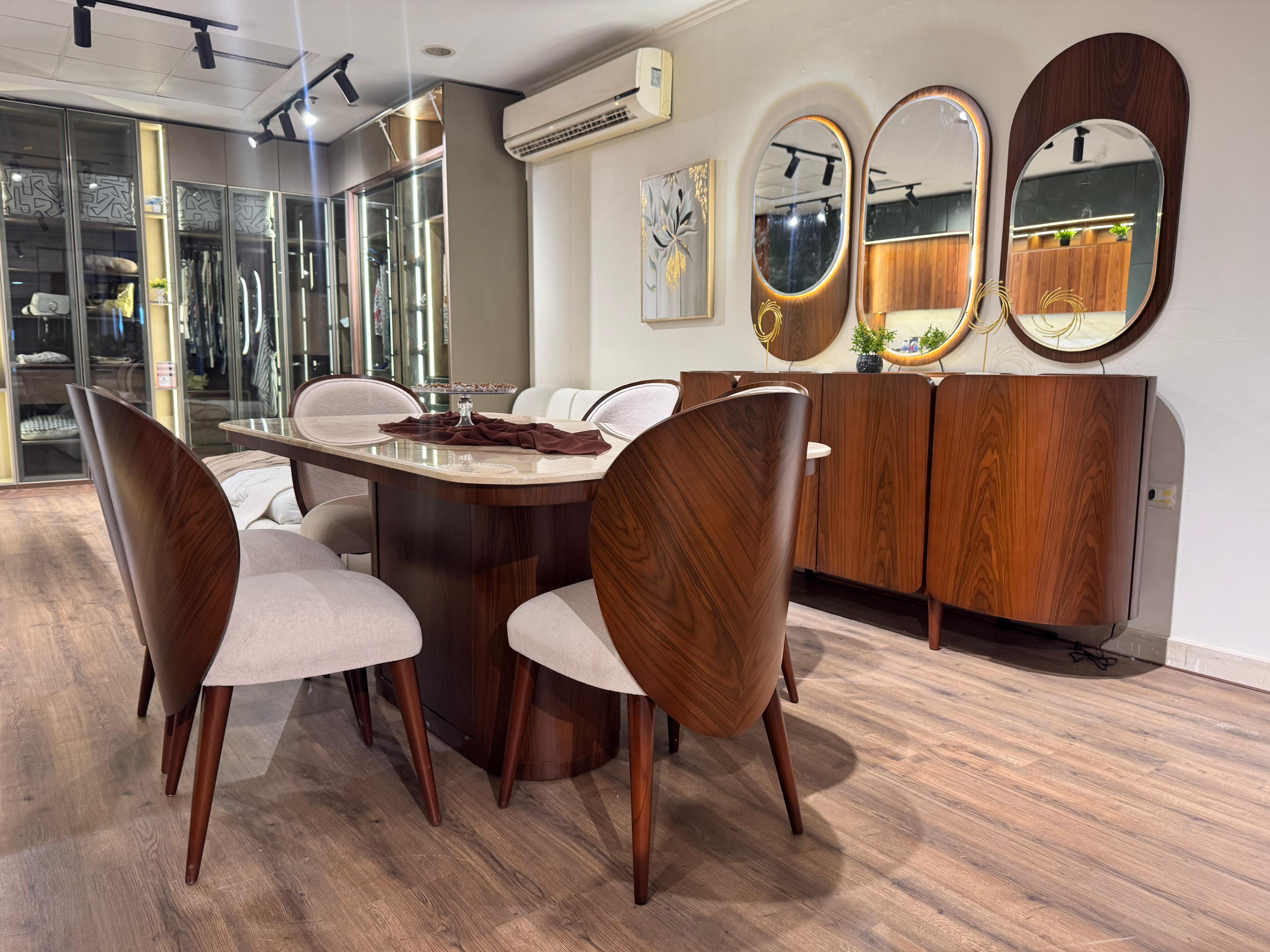 غرفة نوم مكونة من سرير + ٢ كمود + تسريحة + دولاب خشب ام دي اف